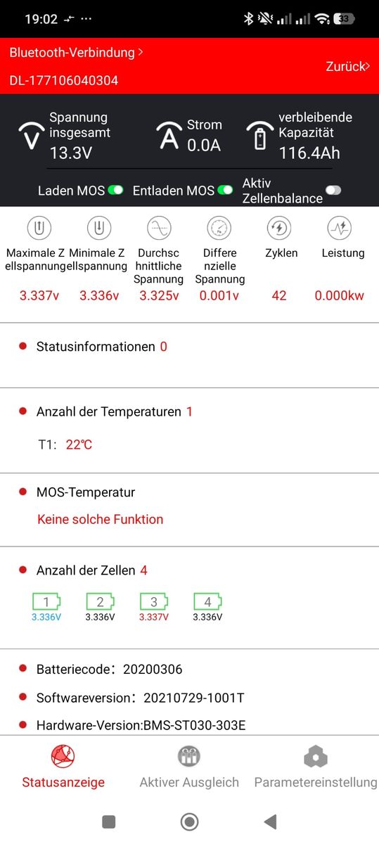 Also mein altes BMS (H-Serie) hat ja wenigstens noch einen Zugriff über die App zugelassen. Leider stand da unter Statusinformationen eine satte 0, also nix. Die App zeigt weder irgendweche Auffälligkeiten oder Fehlermeldungen im Fehlerfall. Man bemerkt nur, dass das BMS den Akku nicht lädt. Weder im Auto, wenn der Fehler auftritt, noch danach, als ich den ganzen Pack ausgebaut bei mir auf dem Schreibtisch stehen hatte.