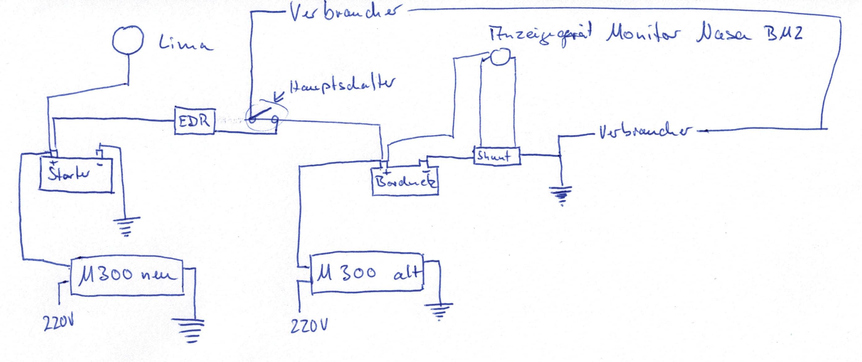 ein altes EDR (ca. 20 Jahre), das den Strom von der Lichtmaschiene erst in die Starterbatterie leitet, bis die voll ist und dann zur Bordnetzbatterie "öffnet".Das neue M300 ist an die Starterbatterie angeschlossen. Das alte M300 zeigt nun eine immer leere Bordnetzbatterie an und kommt aus dem Startmodus nicht raus.