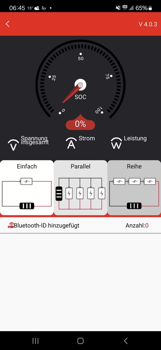 Die Bluetooth-Funktionen des Betriebssystems werden für die Funktion der Smart BMS App nicht benötigt. Der Bluetooth-Transceiver des BMS darf also nicht über das Betriebssystem gekoppelt werden, wie man es z.B. mit Audio-Kopfhörern macht. Es wird statt dessen einfach nur die App installiert, die natürlich das Recht benötigt, auf die Bluetooth-Funktion zuzugreifen und damit dann die Verbindung mit dem Bluetooth-Transceiver des BMS hergestellt.