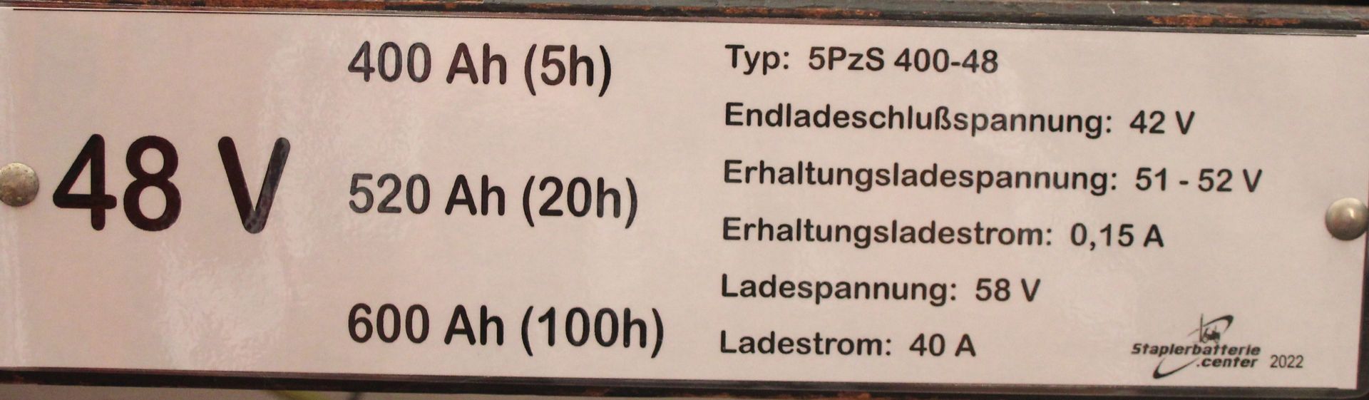 Die zentrale Frage war, welches Laderegime verwende ich, um der zwangsläufigen Selbstentladung der Batterie entgegenzuwirken. Es handelt sich um eine 48 V 400 Ah (5h) Blei-Antimonbatterie (5PzS 400-48). Die Standzeit von Blei-Antimonbatterien beträgt etwa 4...6 Monate (im Vergleich: Blei-Kalzium 15...18 Monate).