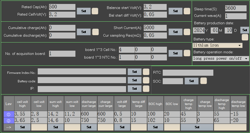 Ein Einstellvorschlag: So konfiguriere ich z.B. die 4S/500A-BMS: