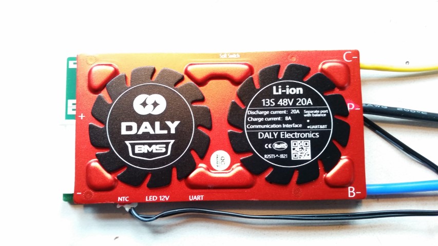 Habe mir ne 48 V (13S) Li-Ion-Akku aus alten (aber noch guten) Zellen für mein Ebike gebaut, bei der ich ein "DALY 13S 48V BMS" "HL28" mit Common Ports und 20A/10A verbaute.