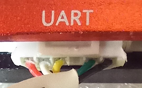 Ganz links ist Rx (rot), rechts daneben Tx (weiss), ganz rechts GND (schwarz).