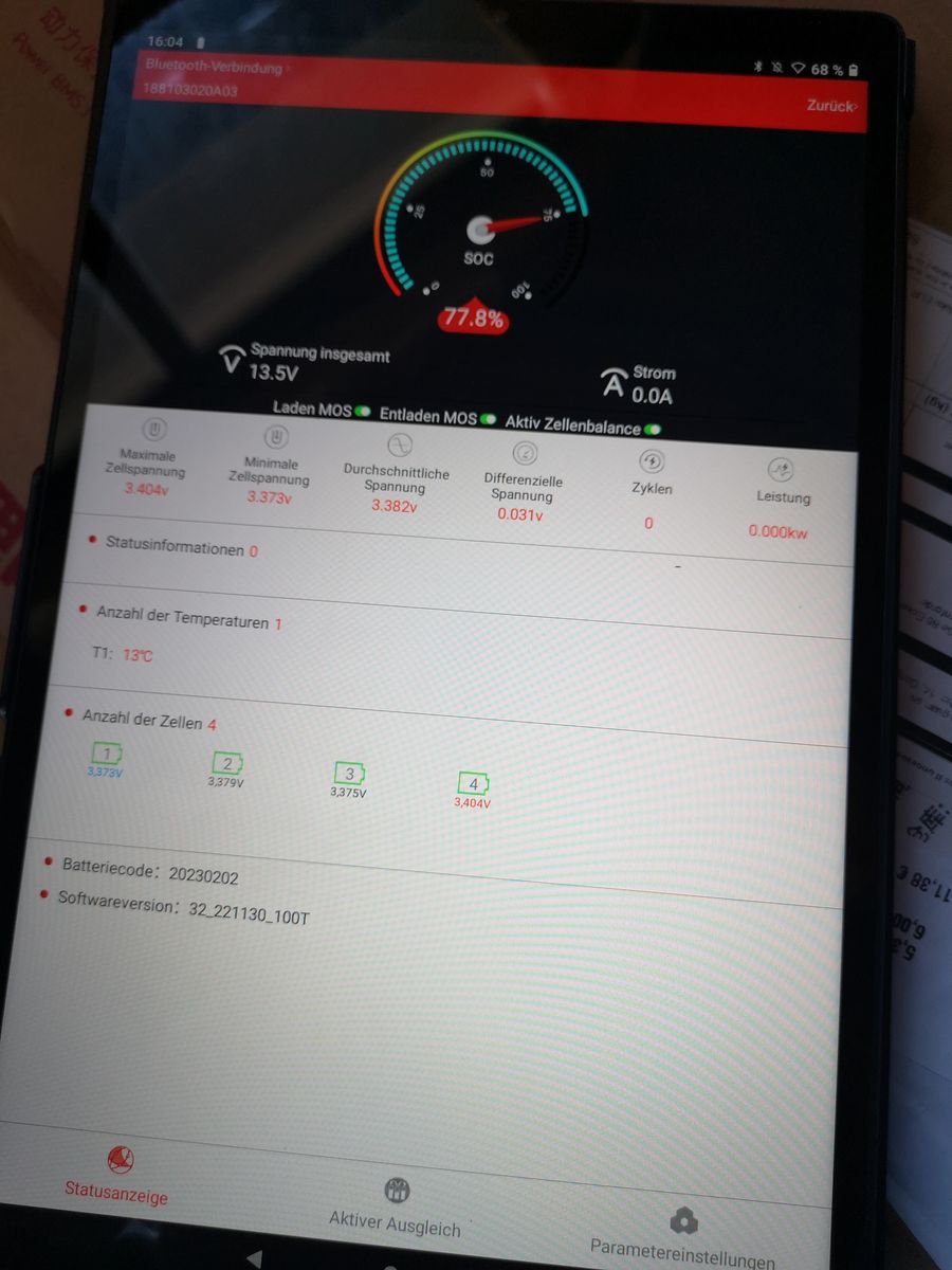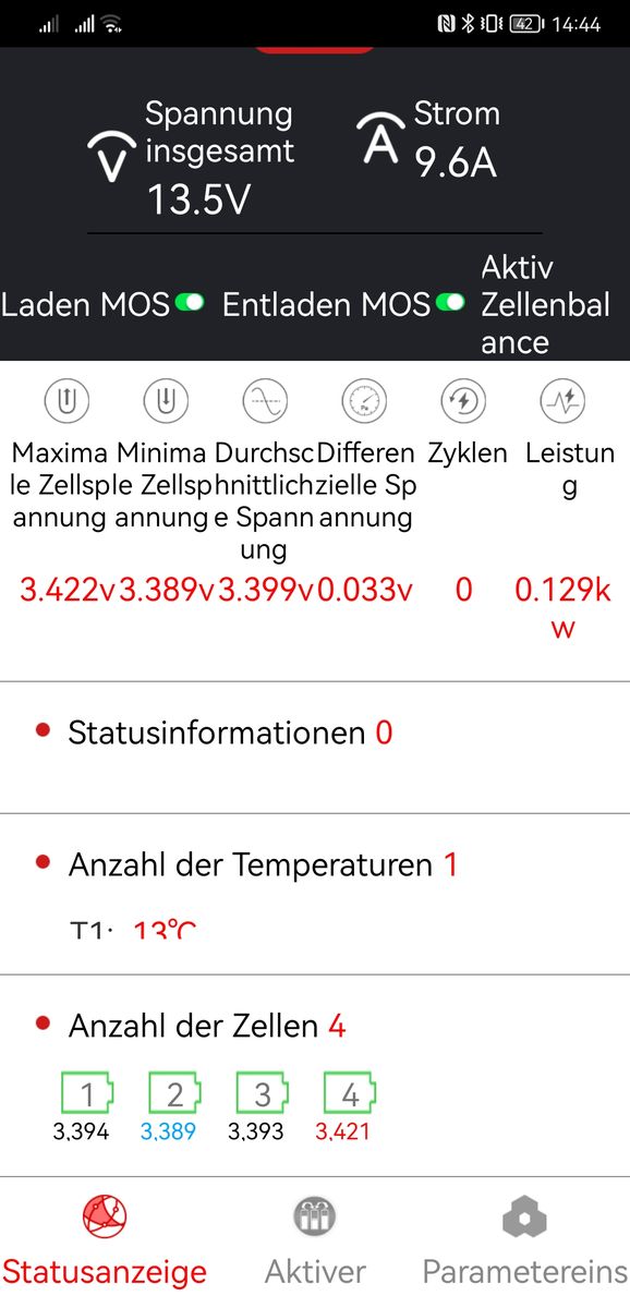 • hallo der Balancer soll arbeiten die Balancerschwelle habe ich auf 3,2 V die zellen sind driüber . Ladung läuft 14,x A .