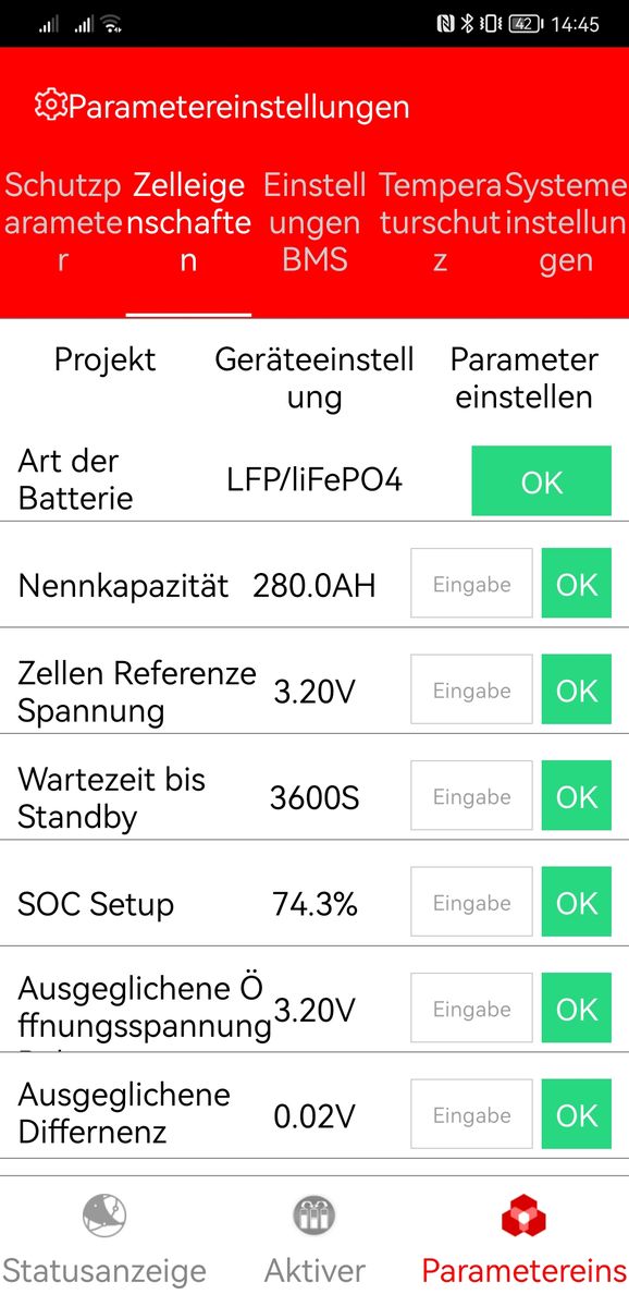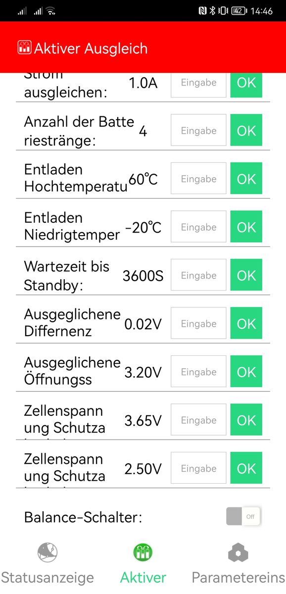 • Ja, die Bezeichnung "Aktiv Zellenbalance" ist absolut irreführend. Ich vermute mal, es soll in etwa "Zellenbalance aktiv (an/aus)" bedeuten. Aber wenn Du die Daly-Apps von vor drei Jahren gesehen hättest, dann hättest Du Dich ohnehin wegen gewisser Begrifflichkeiten totgelacht.