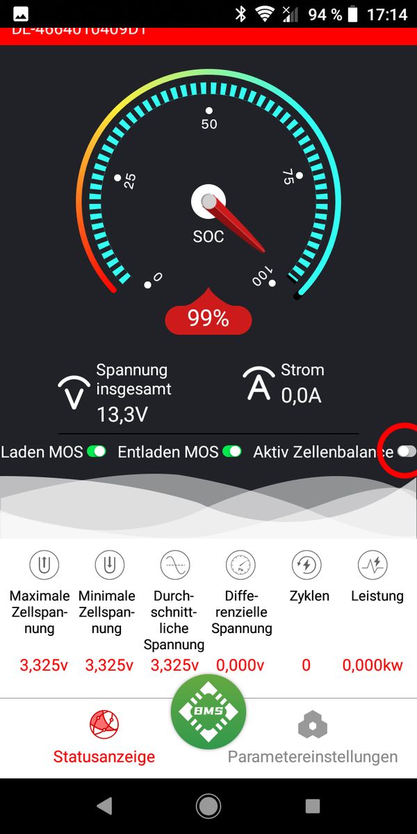 Was mir jetzt nicht klar ist: die App hat jetzt ein Menü für den Daly-eigenen aktiven Balancer. Den habe ich nicht und habe den Schalter ganz unten daher deaktiviert. Die Frage ist nun: sieht man irgendwo, ob der integrierte passive Balancer gerade aktiv ist?