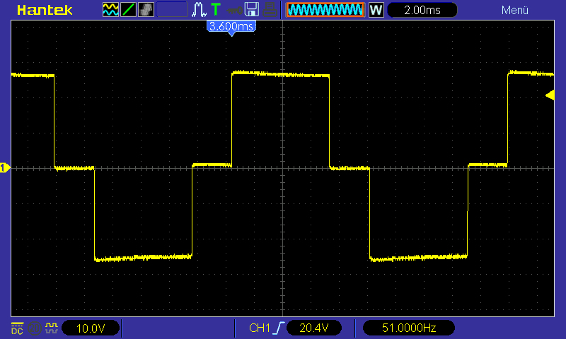 Das, was man auf dem Oszillogramm erkennt, ist einfach nur die Folge +230V / Aus / -230V / Aus / +230V usw. Das ist die einfachste Form von Wechselstrom und damit kann man auch schon einiges anfangen: Man kann damit z.B. ganz hervorragend Glühlampen betreiben. Oder Heizlüfter. Oder Wasserkocher. Immer dann, wenn der Wechselstrom einfach nur zur Erzeugung von Wärme verwendet wird, ist die genaue Spannungsform egal. Es müssen nur 230V bei 50Hz Wechselstrom sein und das können auch einfache und wirtschaftlicher arbeitende Trapez- bzw. "Modified-Sine" Wechselrichter. Das können die sogar ganz besonders gut und bei nur geringen Verlusten.