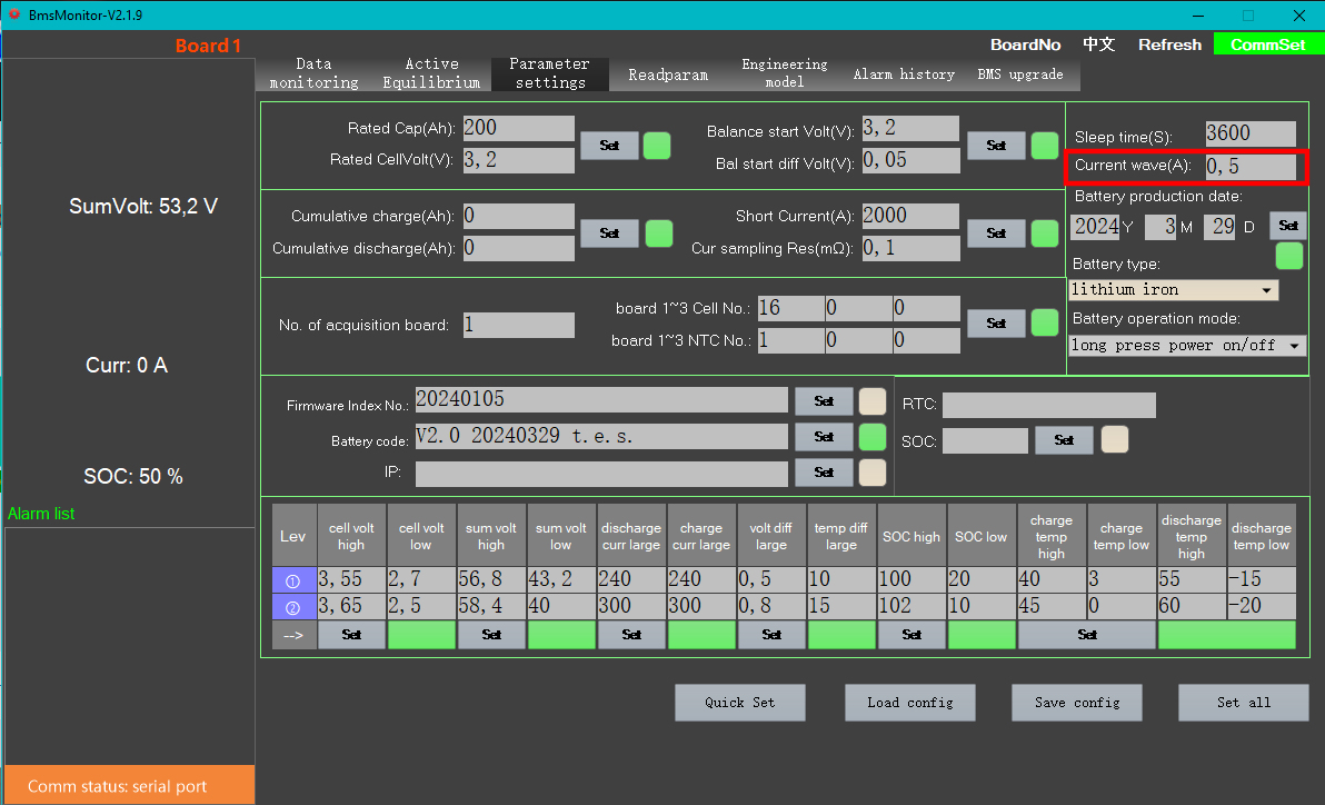 Über den Konfigurationswert "Current Wave" in der BMS-Monitor-Software kann man das Verhalten bei stark schwankender Stromanzeige verändern.