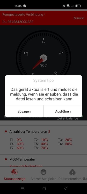 Das BMS komplett vom Strom genommen, auch probehalber ein anderes Bluetooth Modul probiert.