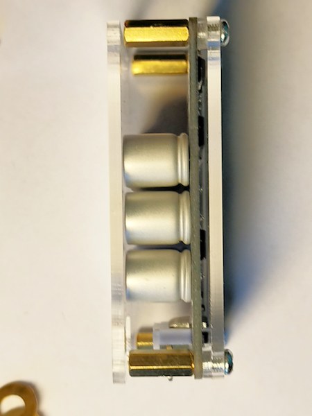 Leider sind die Abstandshalter um etwa einen Millimeter kürzer, als die Bestückungshöhe der SMD-Elkos. Bei der Montage biegt sich dann die Plexiglasplatte an den Ecken (Verschraubungspunkten) etwas nach unten. Ist das bekannt?