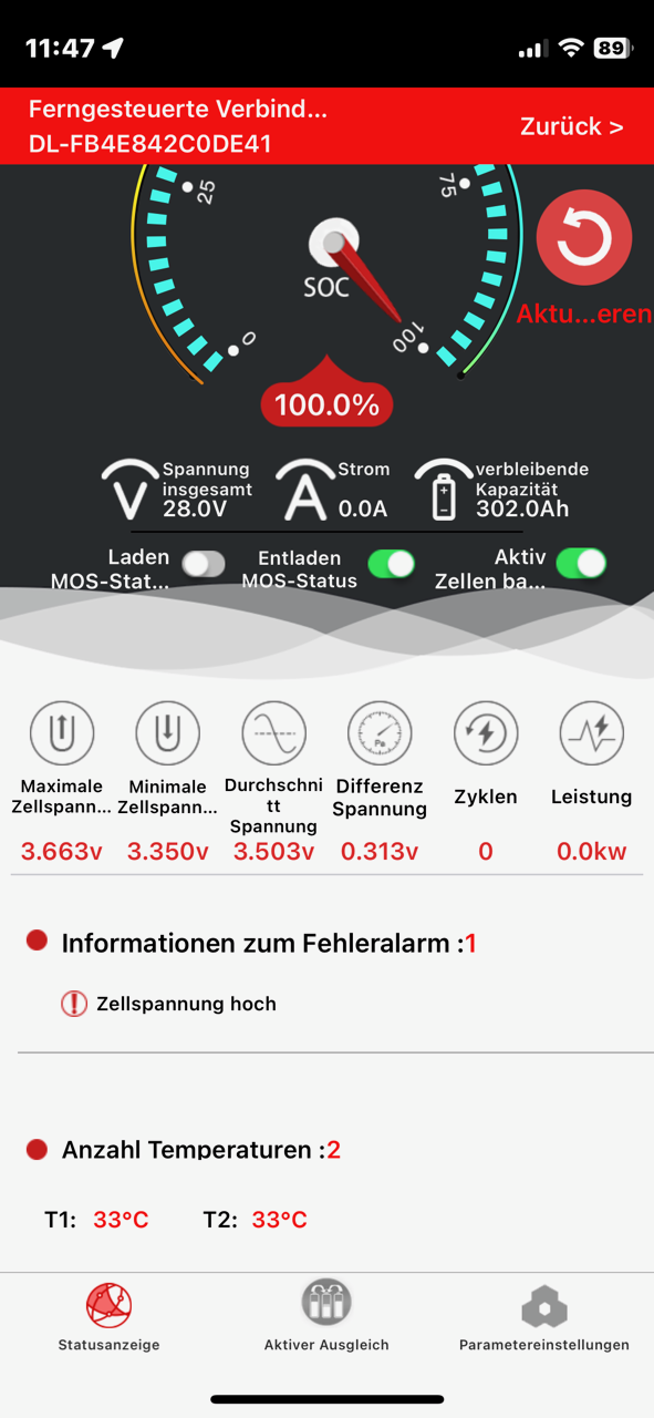 ZB heute morgen SOC 0,2% aber 26,6V.