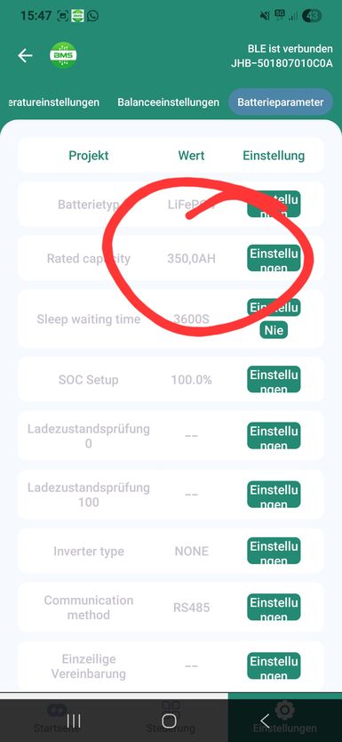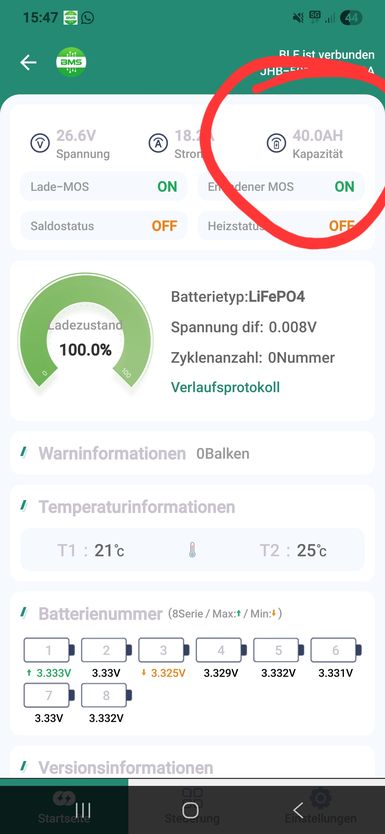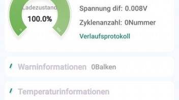 Was mir wundert ist, dass bei der Batterie in der App eine Nennkapazität von 30Ah angezeigt wird, obwohl es ja eigentlich 100 sein sollten.