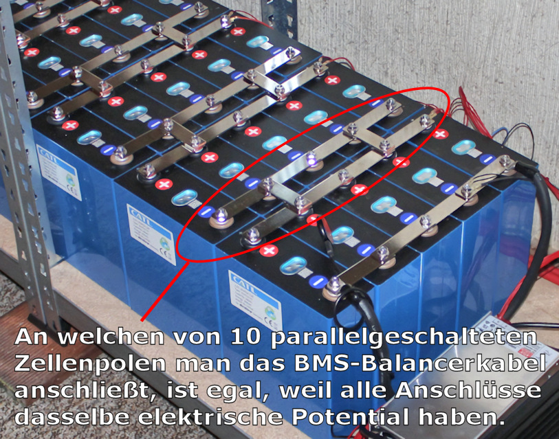 Kann ich die Kabel des Bms auf jeweils einen Pol der Parallel geklemmten Zellen befestigen? Da zellverbinder und zwei Bms Kabel nicht mehr auf die Zellschraube passt. Über eine kurze Antwort würde ich mich sehr freuen.