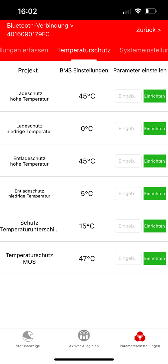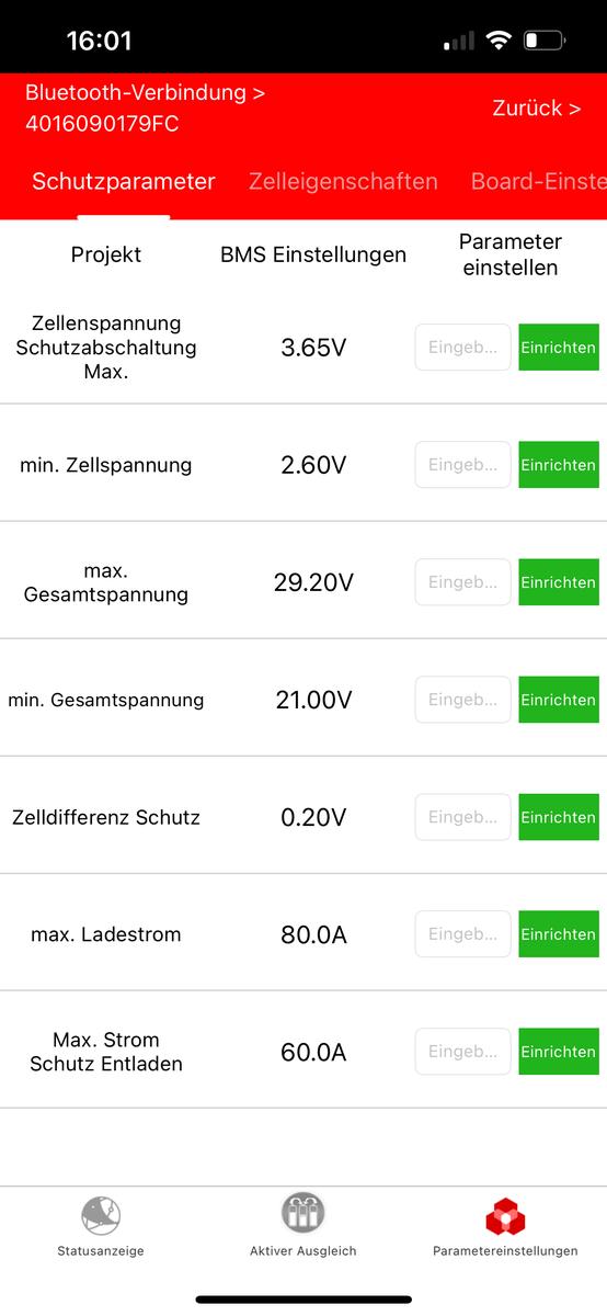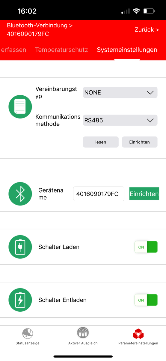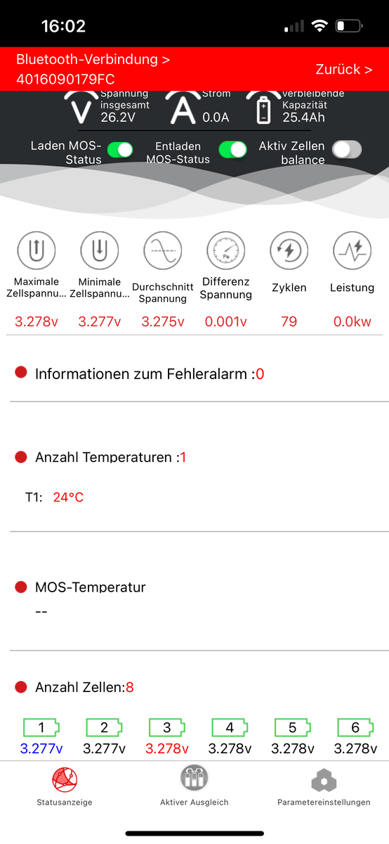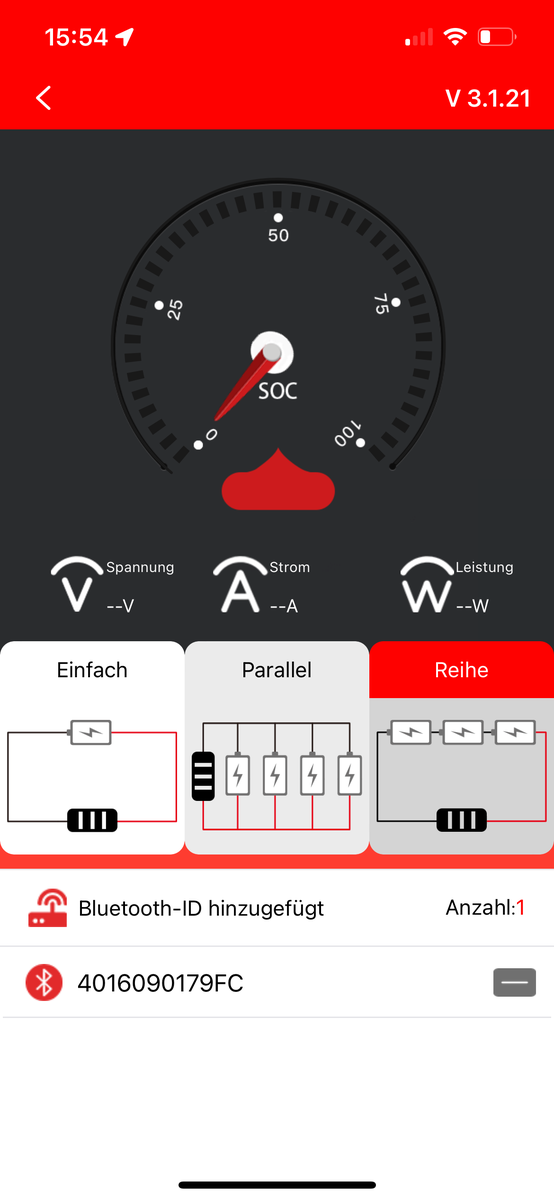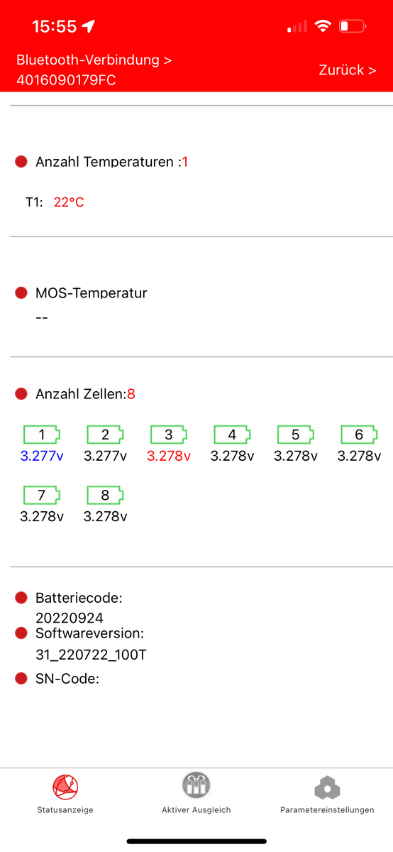 Auch die Bluetooth-Funktion der Daly Smart-BMS funktioniert NUR bei initialisiertem BMS. Also nicht wundern, wenn das Smartfon keine BMS-Kennung anzeigt: Auch hier reicht ein kurzer Ladestromimpuls aus, das BMS zu starten und die volle Funktionalität herzustellen.