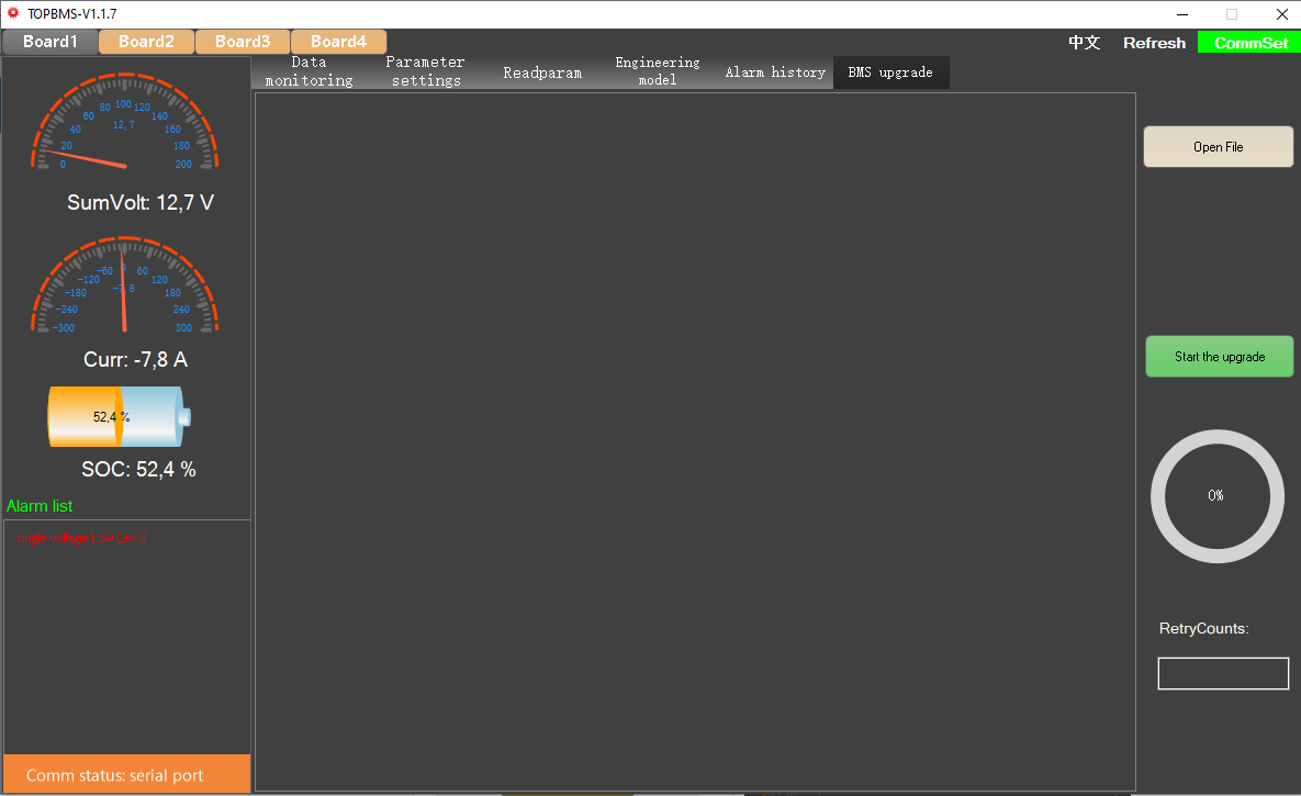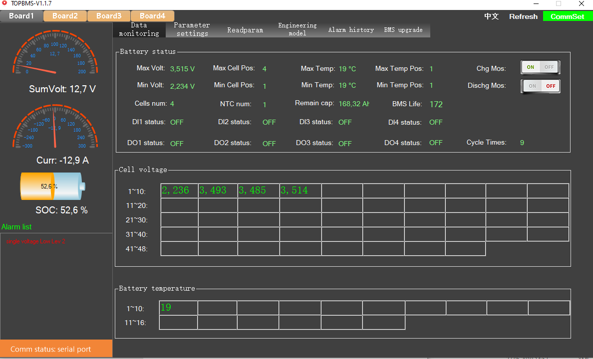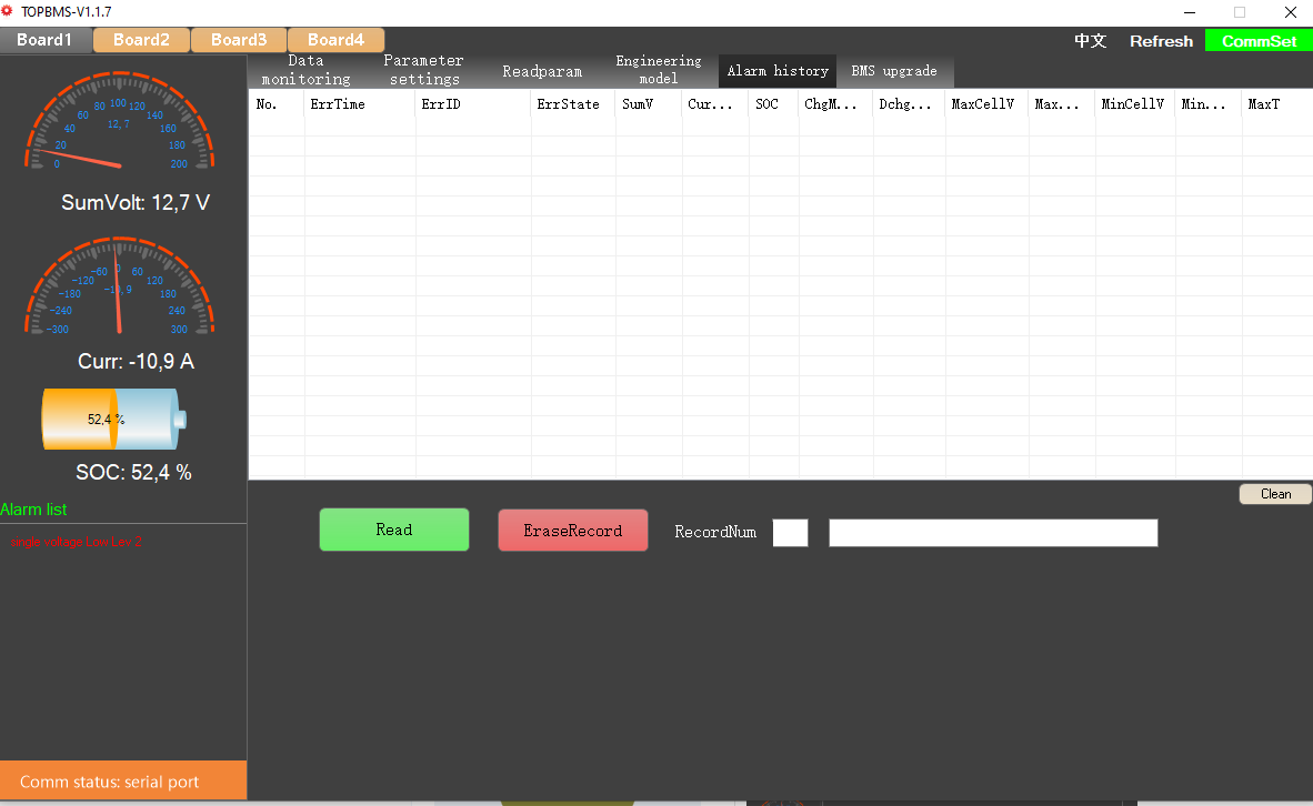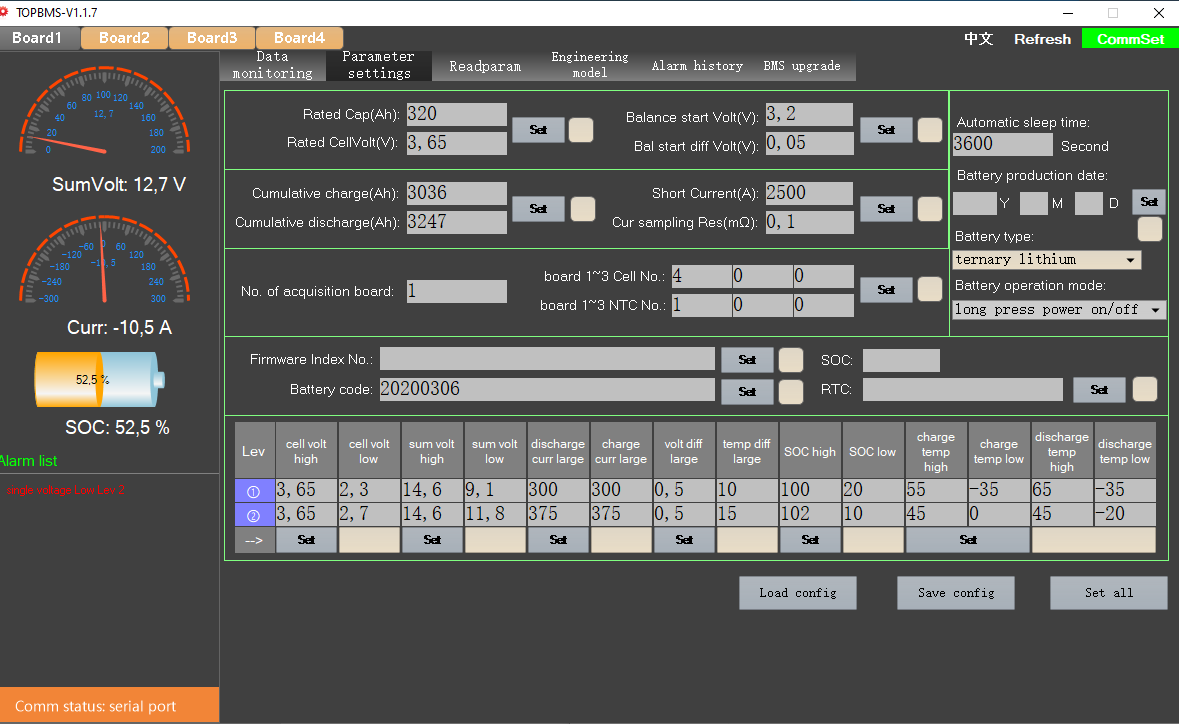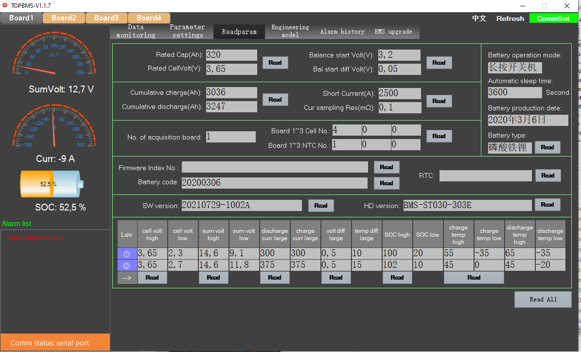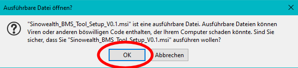 Die Original-Daly-Software habe ich nicht zum laufen bekommen und ich habe auch niemanden gefunden, der das geschafft hat. Daher nehme ich an, sie ist einfach nicht in Ordnung. Wir können uns aber auch sehr gut mit der Software "Sinowealth_BMS_Tool_Setup_V01.msi" behelfen, die im Grunde dasselbe leistet: