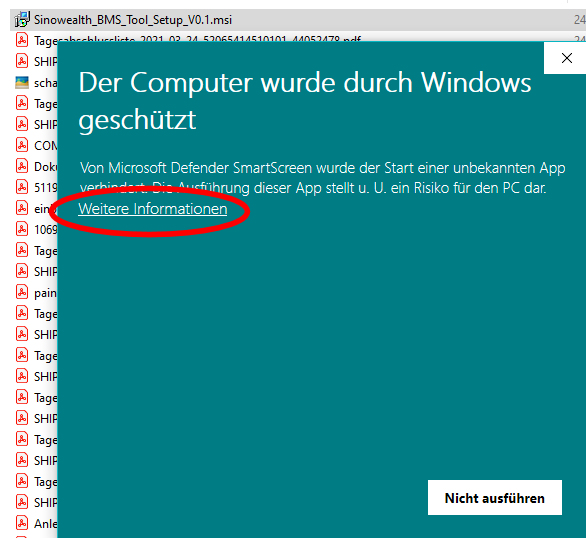 Es kann übrigens passieren, dass Windows Sie vor der Installation der Software warnt. Diese Warnung bitte übergehen und auf "Weitere Informationen" klicken...