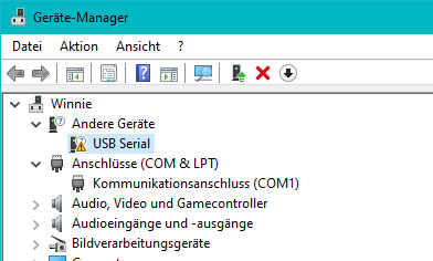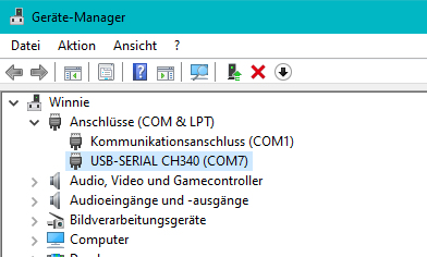 So soll es aussehen: "USB-SERIAL CH340" Der angezeigte COM-Port kann wie gesagt von meiner Konfiguration abweichen.
