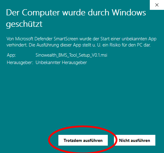 Es kann übrigens passieren, dass Windows Sie vor der Installation der Software warnt. Diese Warnung bitte übergehen und auf "Weitere Informationen" klicken...
