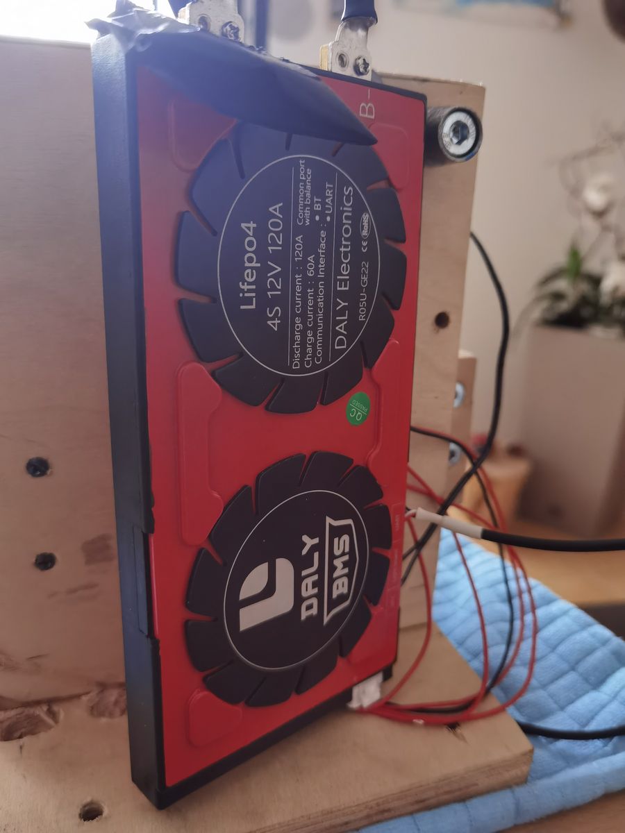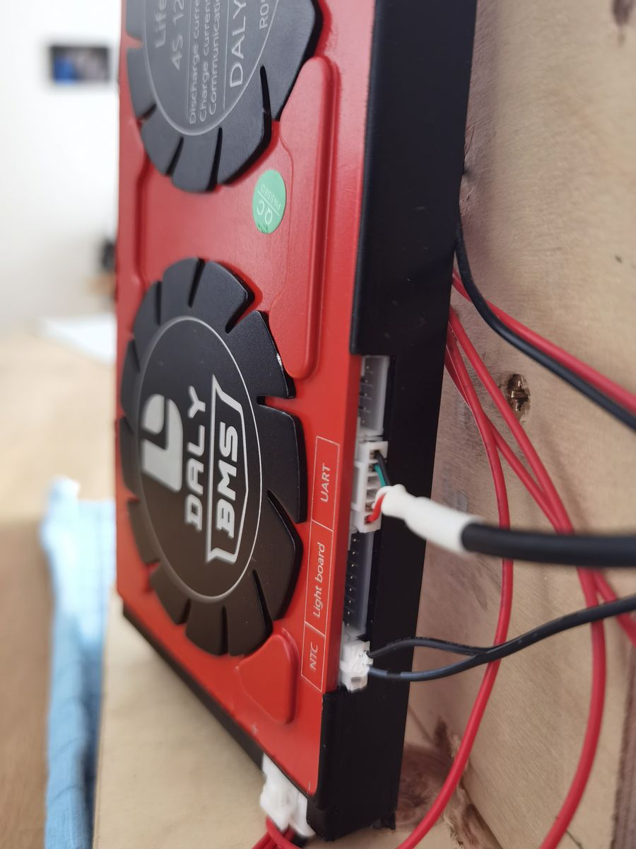 Ein Daly 120A Smart BMS lifepo 4s, ich habe schon vieles Probiert. Alle Kabel vom BMS sind in der Richtigen Reihenfolge. Lade Impuls, Blaues Minus und Schwarzes Minus aneinander hilft auch nicht. :c