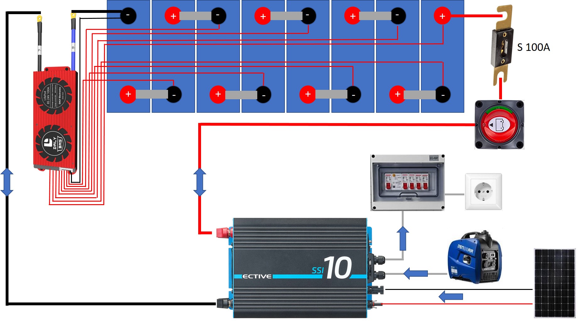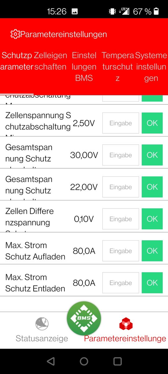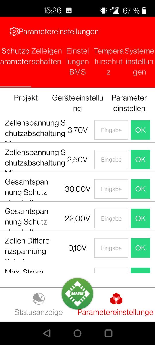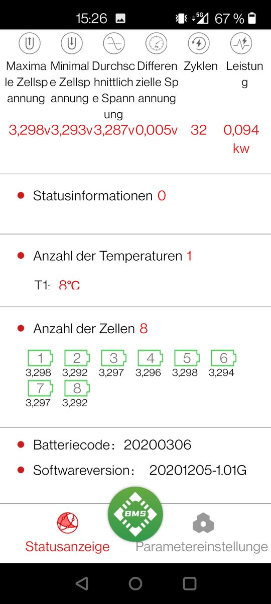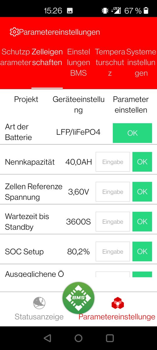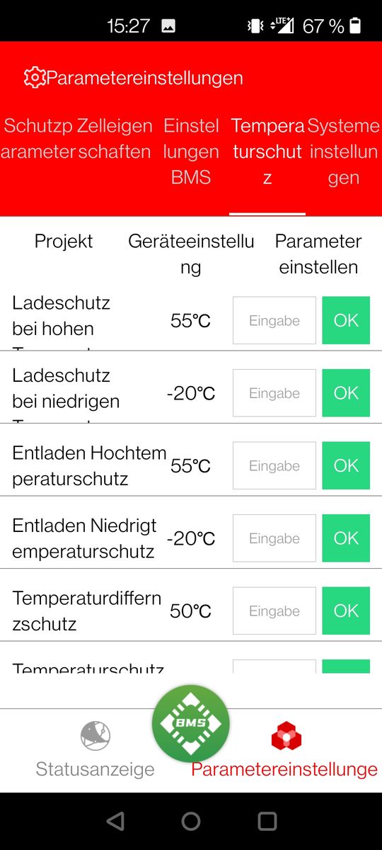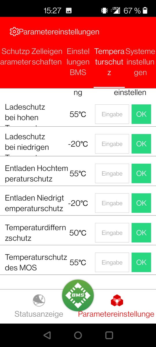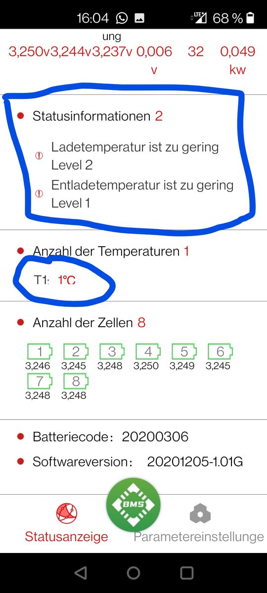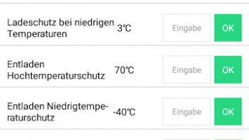 meine Name ist Jens und ich betreibe für die Pferdewiese ein kleine Inselanlage. 8x Winston LifeYpo4 40AH, 370Wp Solarmodul, Ective 24V SSI 10 Laderegler inkl. Wechselrichter, Daly BMS 8S. Den Sommer über hat´s wunderbar geklappt. Gestern morgen war es dann dann erste mal kalt und die Akkus wurden nicht mehr geladen, Fehlermeldung in der App vor Ort, Temp. zu gering Laden & Entladen. Der Temp. Sensor zeigte mir in der App 1°C an, die Werte in der App, also des BMS, sind auf max. 45°C und min. -20°C eingestellt. Unterspannung gab es keine (22,8V) Warum werden die Akkus nicht geladen? Ist es egal, was man im BMS einstellt und es schaltet immer ab (Sicherheit)? Denn die Winston können bis -20°C oder -25°C genutzt werden. Bin ratlos![]()