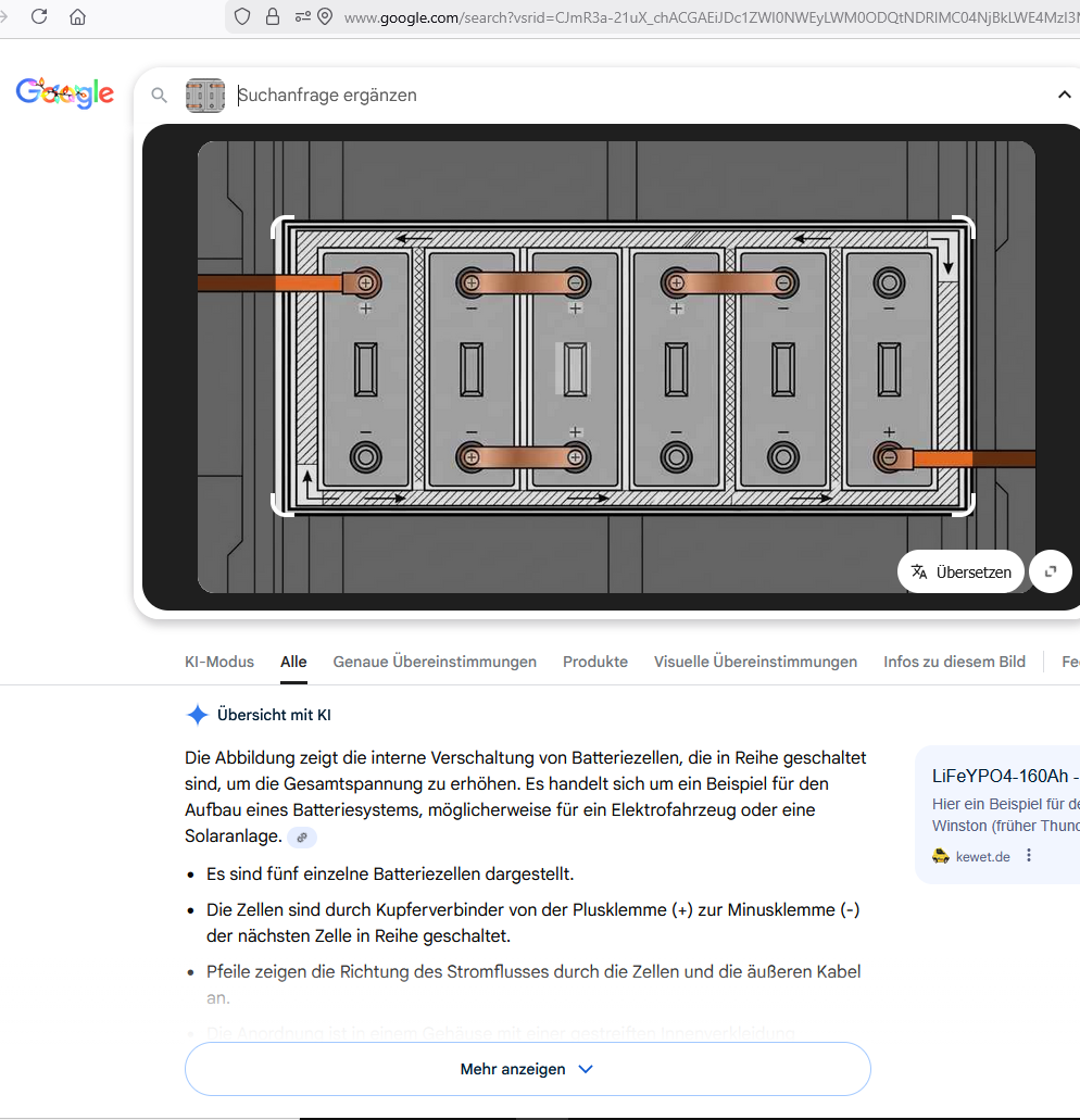 Daher nur das Fazit:Schaltet man mehrere LFP-Batterien parallel, kann man sich jegliche Mühen sparen, die verschiedenen BMS zwecks Auslesung der SoC-Anzeigen über Datenkabel zu vernetzen. Da kommt nichts nahrhaftes bei heraus, außer verschiedene Werte, die dann - natürlich - auch nicht stimmen.