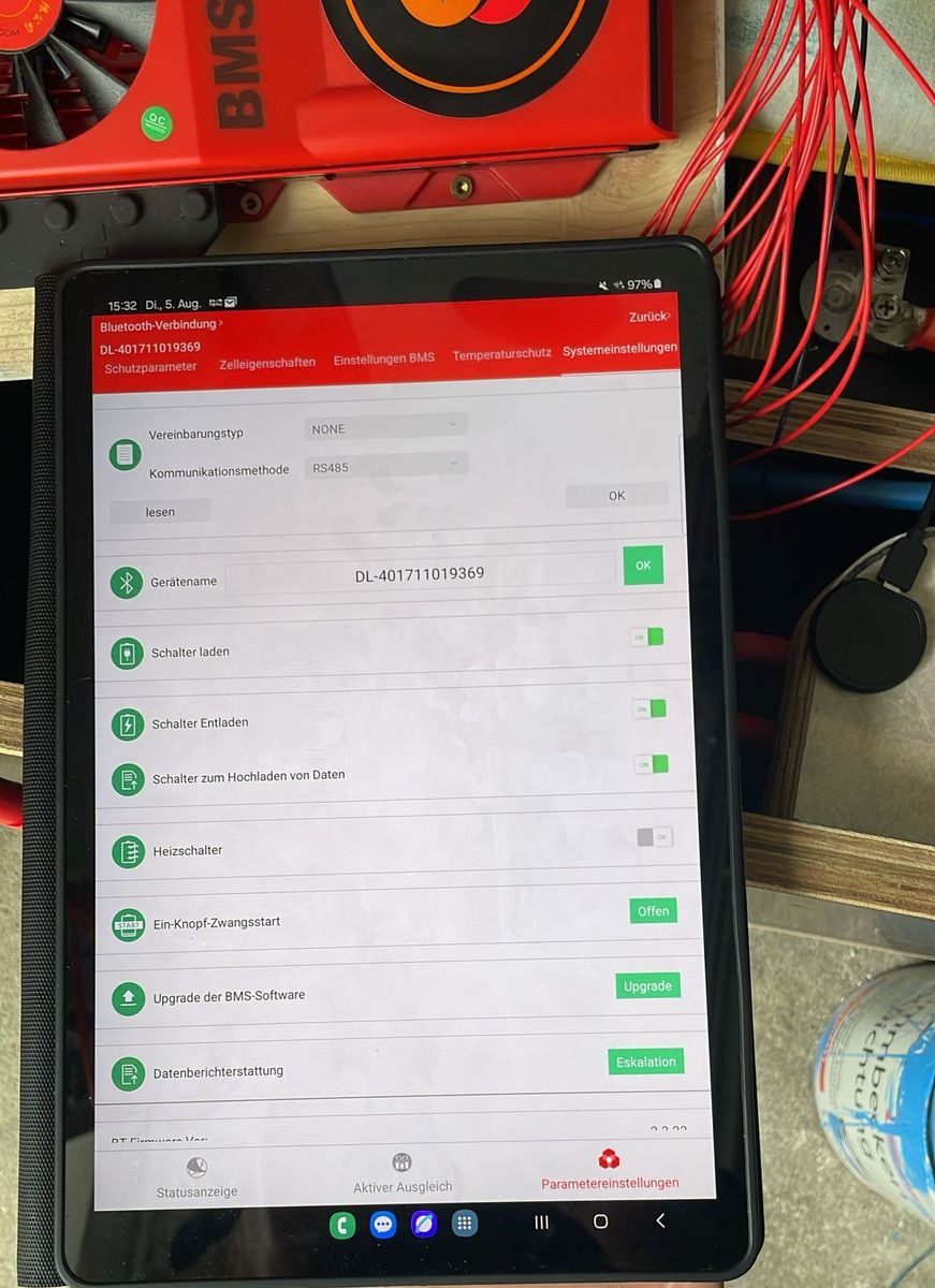 Mit dem DALY Wifi WLAN Transceiver kann ich mir mit dem BMS verbinden und auch einige Werte verändern nur wenn ich das Protokoll ändern möchte auf DALY und RS 485 für meinen DEYE 12 bekomme ich immer eine Fehlermeldung und es läst soch nicht einstellen.