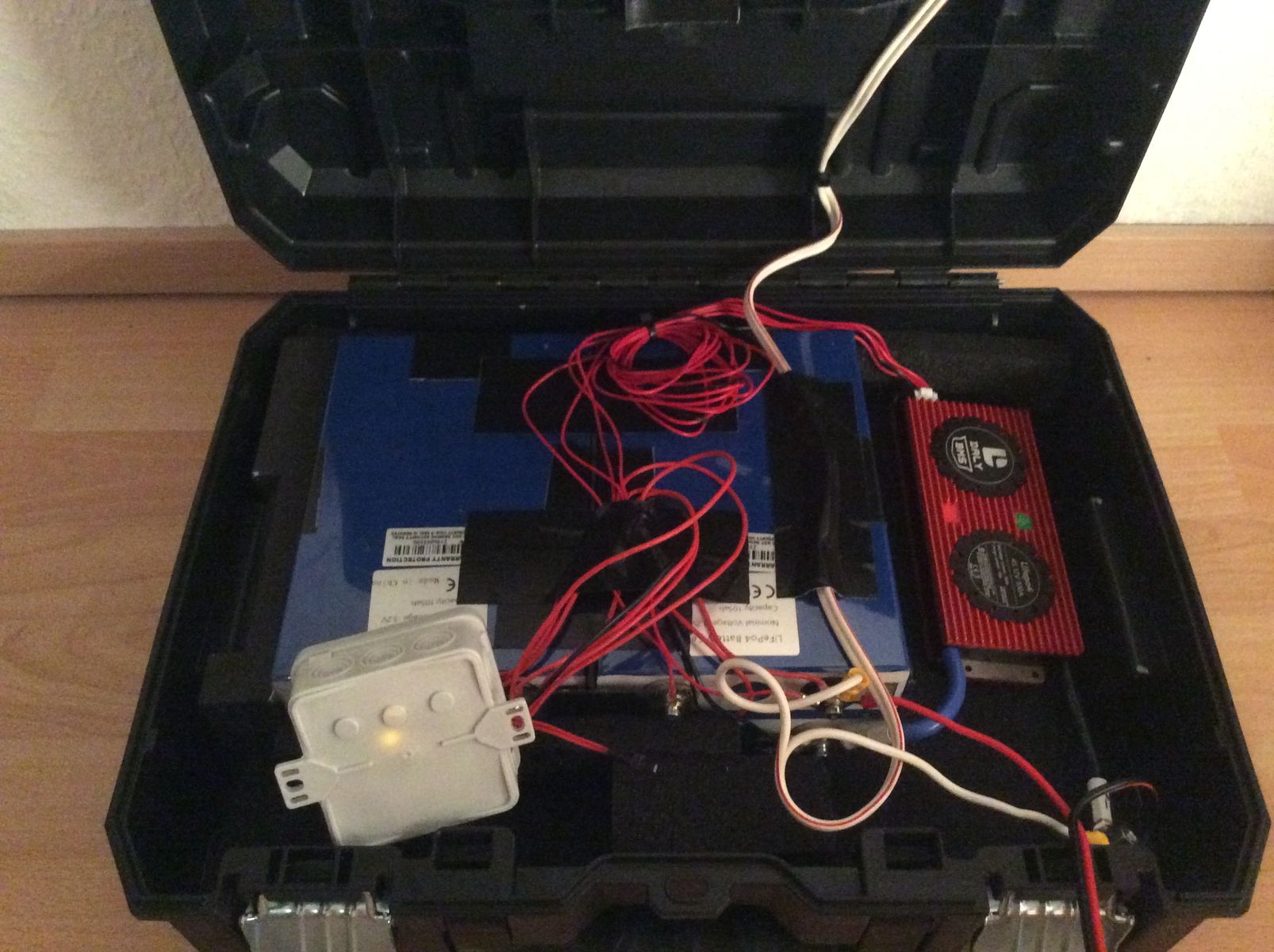 Bausatz LIFEPO4 mit BMS in einen Koffer einbauen, inkl. Ladegerät zum Nachladen an 230V.